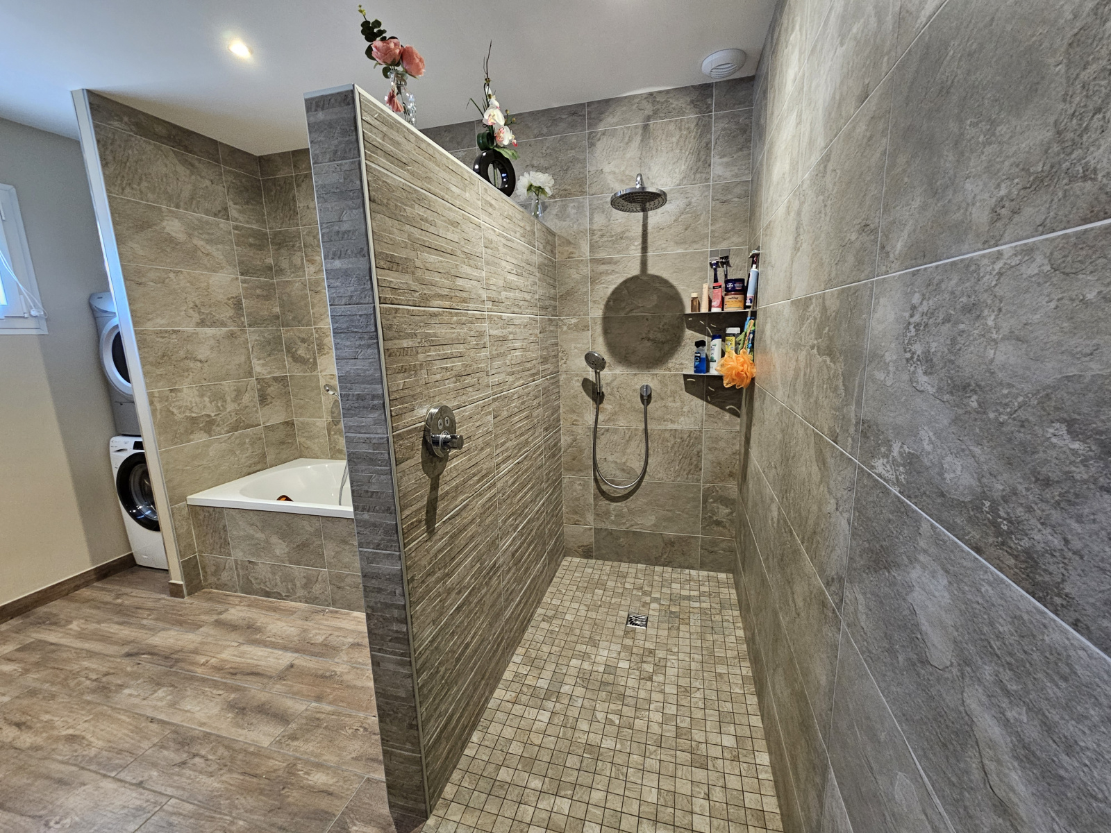 Cette maison se compose de la manière suivante: vaste et lumineuse pièce à vivre ( triple exposition) avec cuisine américaine entièrement équipée totalisant 53m2, cellier de 5m2 avec cumulus neuf 300 litres, 4 belles chambres de 12, 12, 12 et 16,5m2, salle de bain de 12m2 avec meuble double vasque, douche italienne, et baignoire, 2 WC.