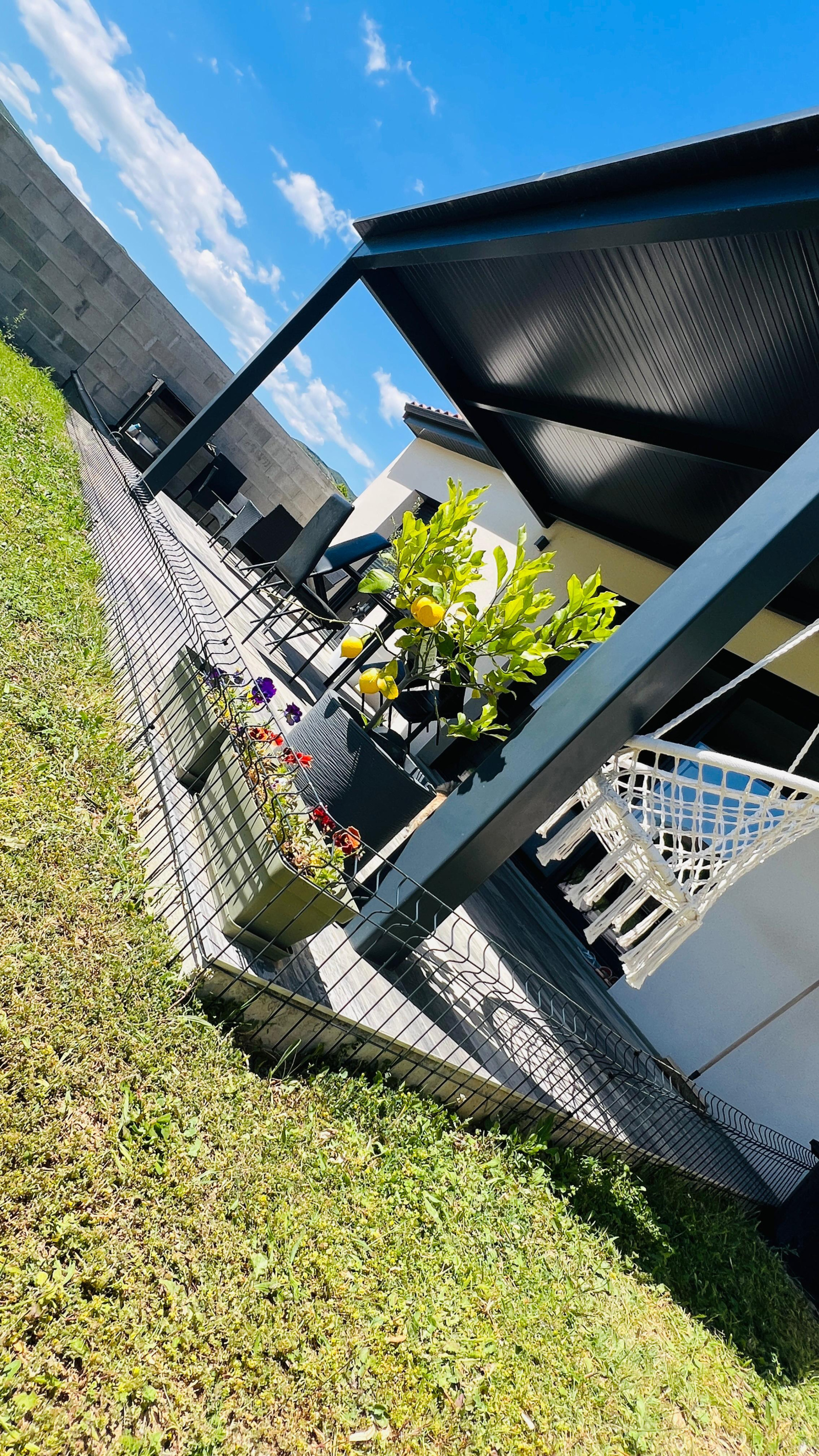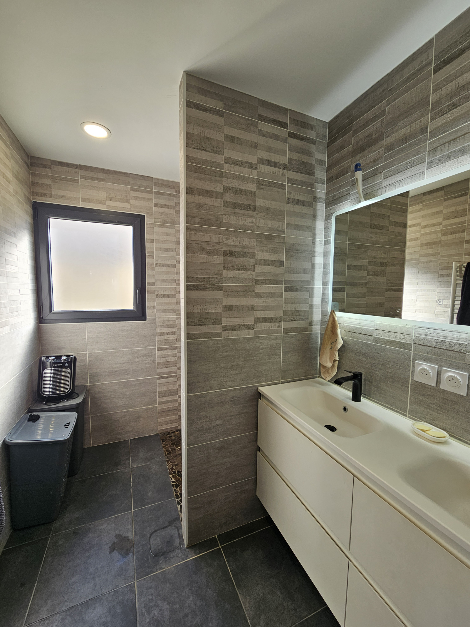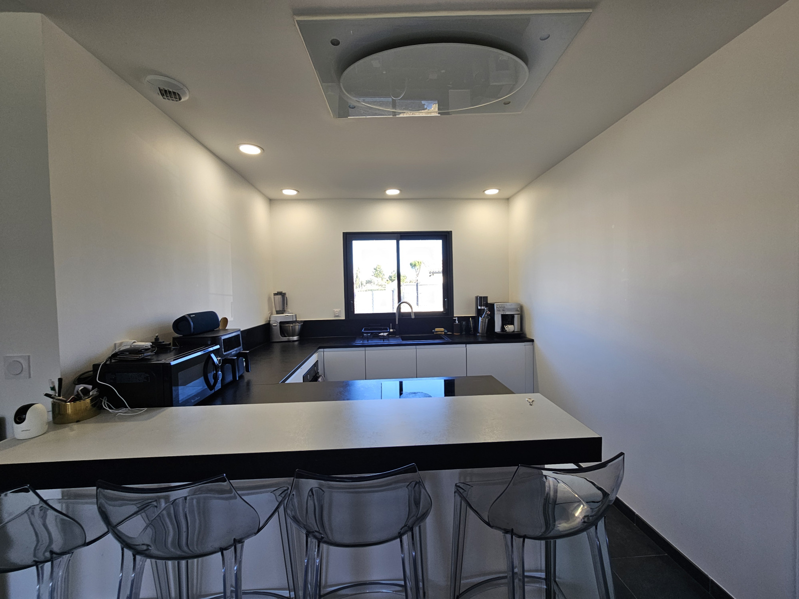 La maison équipée de climatisation, baie à galandage, adoucisseur d'eau, dispositif d'alarme, fibre optique , volets roulants électriques, le tout sur une parcelle entièrement clôturée.