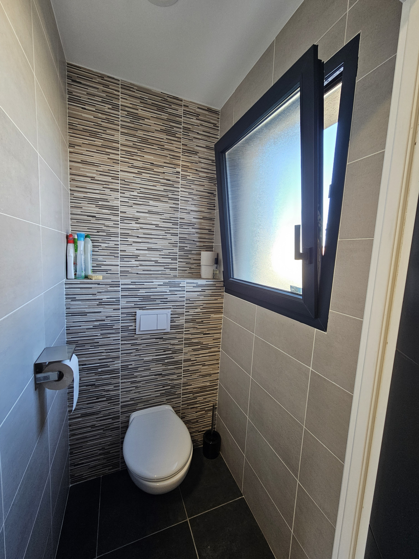 3 chambres de :10, 10 et 12,7 m2. Salle d'eau avec douche italienne et meuble double vasques. WC indépendant. Pièce annexe de 9m2 sans ouvertures pouvant servir à de multiples destinations ( bureau, salle de jeux, ect..) Terasse entièrement carrelée de 31m2, bien exposée sans vis à vis, avec Pergola fixe isolante. Dépendance permettant stockage d'outils de jardinage, ou Moto/vélos, ou bricolage ( 6m2).